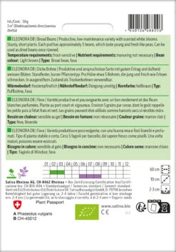Produktive und anspruchslose Sorte mit gutem Ertrag und duftend weissen Blüten. Standfester, kurzer Pflanzentyp. Pro Hülse etwa 5 Bohnen, die jung und frisch wie Erbsen schmecken. In ausgereiftem Zustand als Trockenbohnen verwendbar.