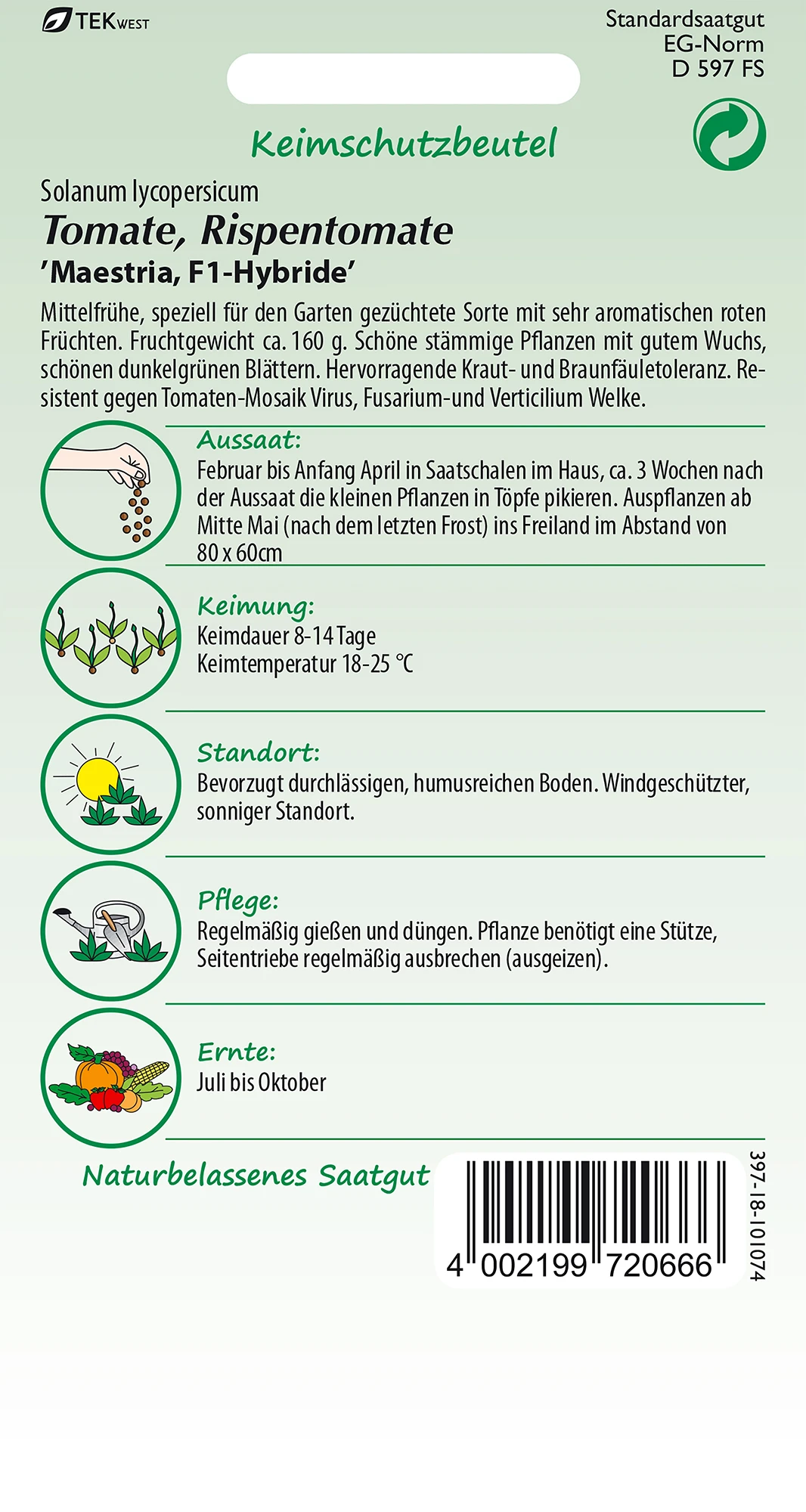 Keimdauer 8 – 14 Tage. Keimtemperatur 18 – 25 °C